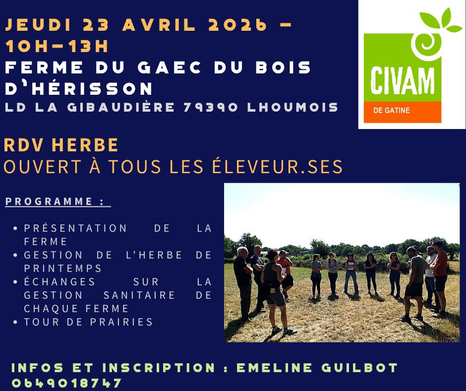 Un RDV ouvert à tous les éleveur-ses pour échanger sur la conduite de l'herbe au printemps, la gestion sanitaire chez chaque participants, ... Une présentation du GAEC Bois d'Hérisson (bovins/ovins) et un tour de prairie complèterons cette matinée.