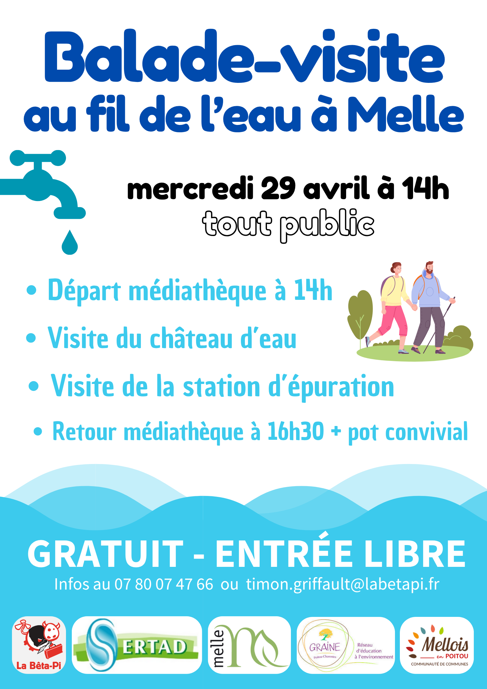 Une balade tout public sur la thématique de l'eau avec une visite du château d'eau de Melle et de la station d'épuration.